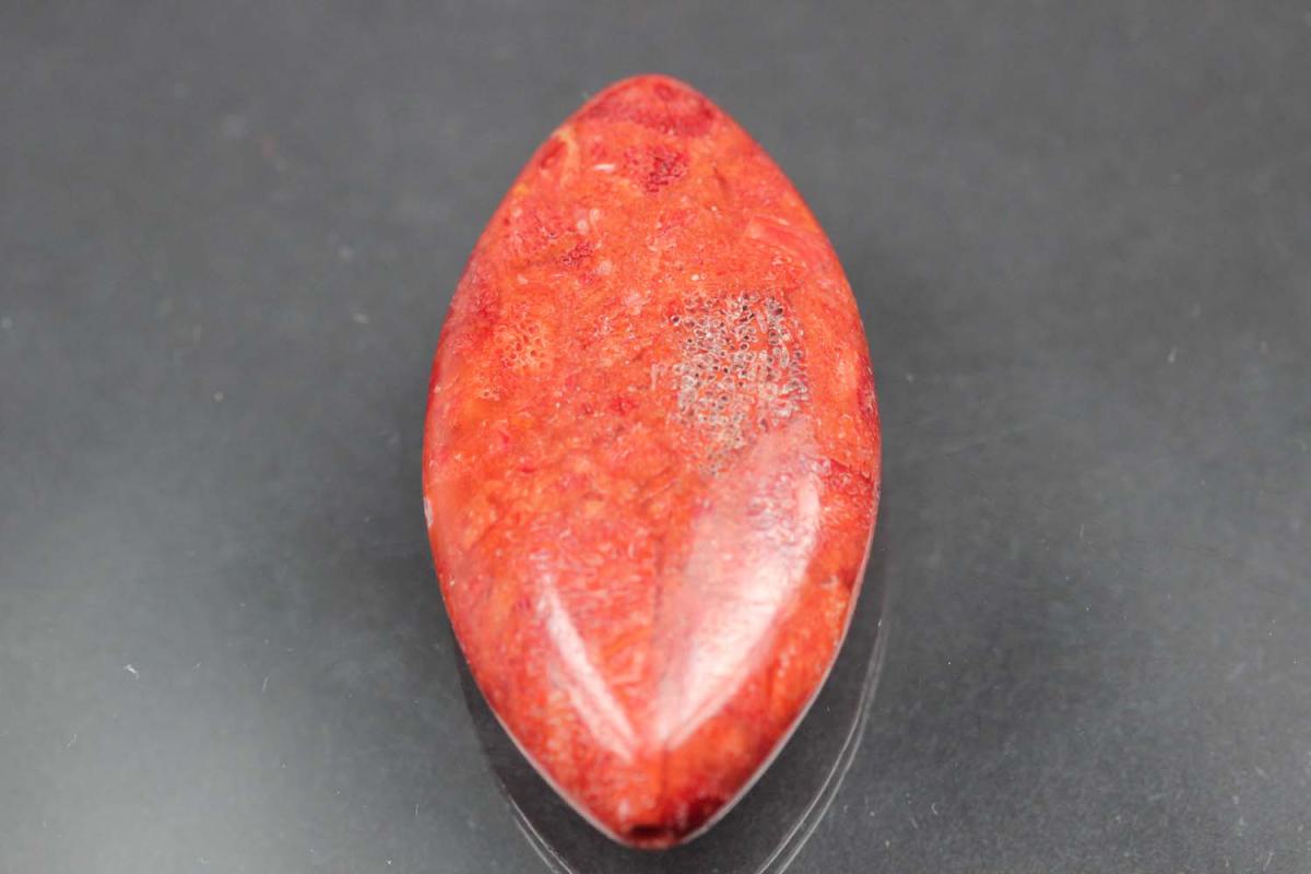 Schaumkorallanhänger gepresst rot Ellipse Maße 38 x 20mm, 9mm stark, Bohrung Ø ca. 1,2mm, längs gebohrt